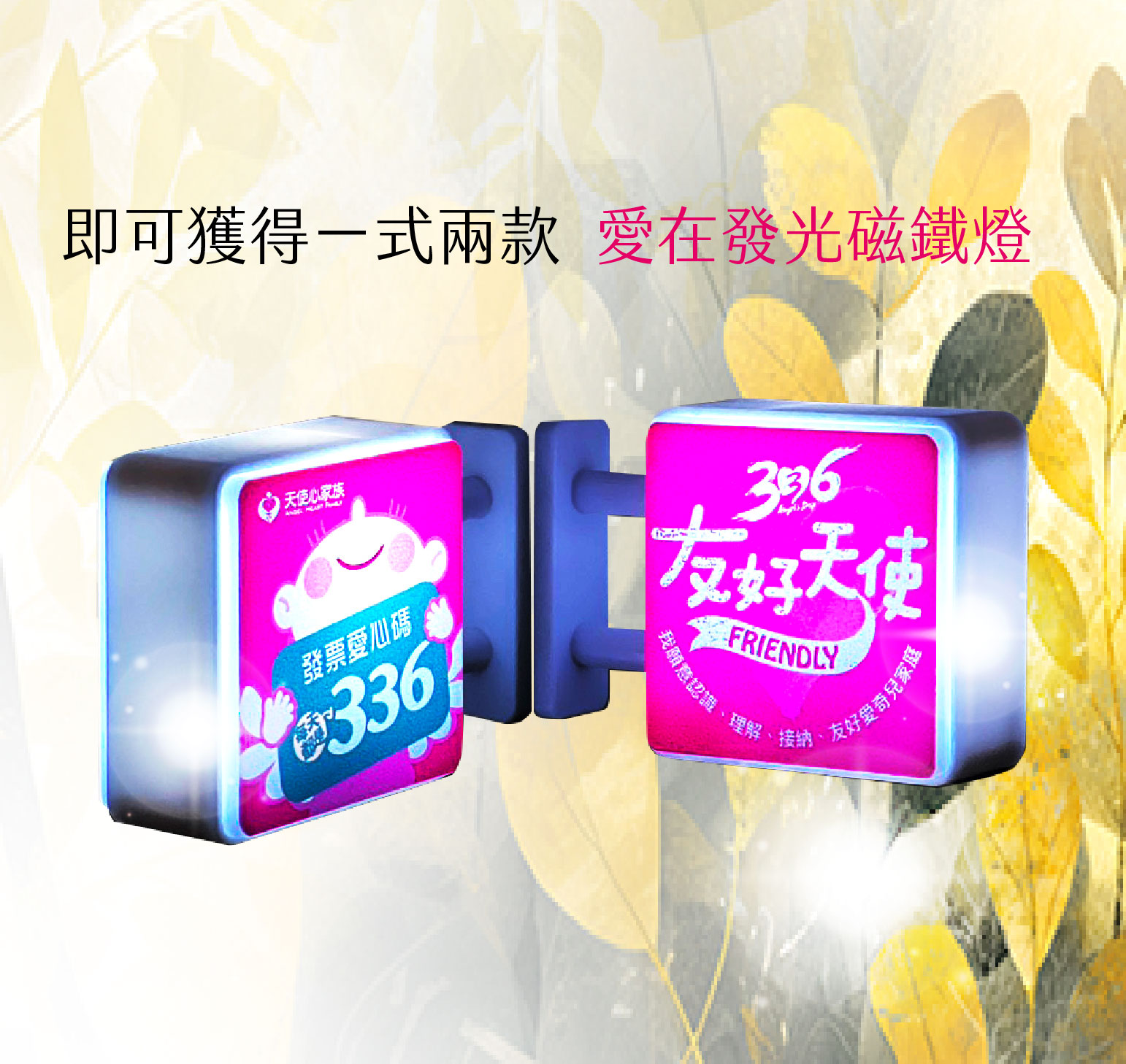 ▲指定捐款支持【愛奇兒家庭服務】計畫,定期定額捐款每月200 元(含)以上持續一年,即可獲得【愛在發光磁鐵燈】一式兩款。數量有限,贈完即止!